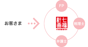 七福計画のお客様はご紹介が多い。それは七福計画が商品のみでなく、経営者の考える法人の実現をサポートし、経営者個人の幸せを考えてご提案しているから。お客さまが今何を求めているかをお伺いし、その先まで見据えて、法人と経営者の未来のお金の対策を一緒に解決していきます。